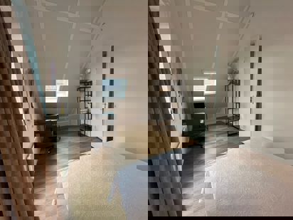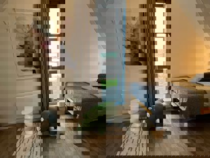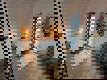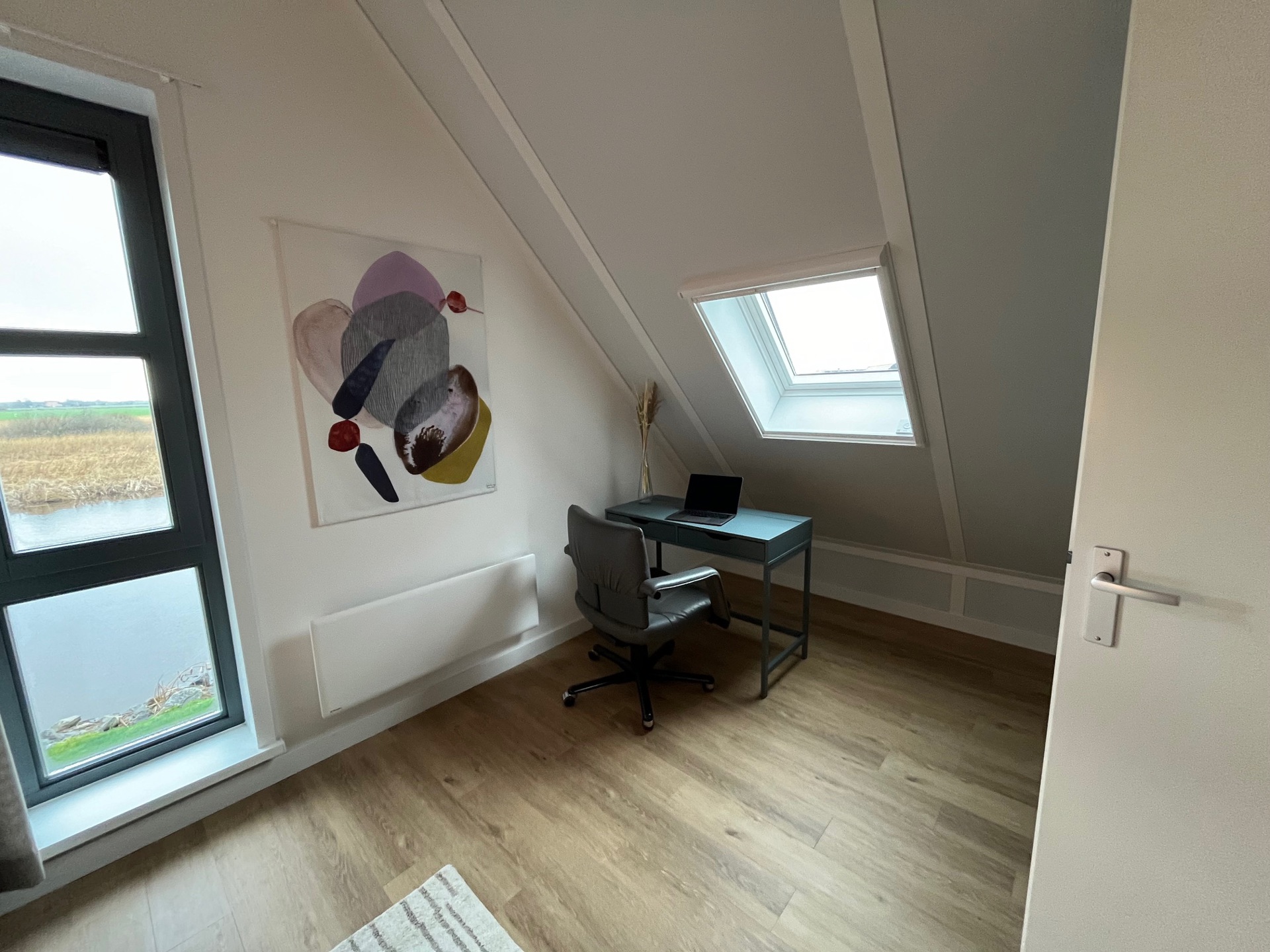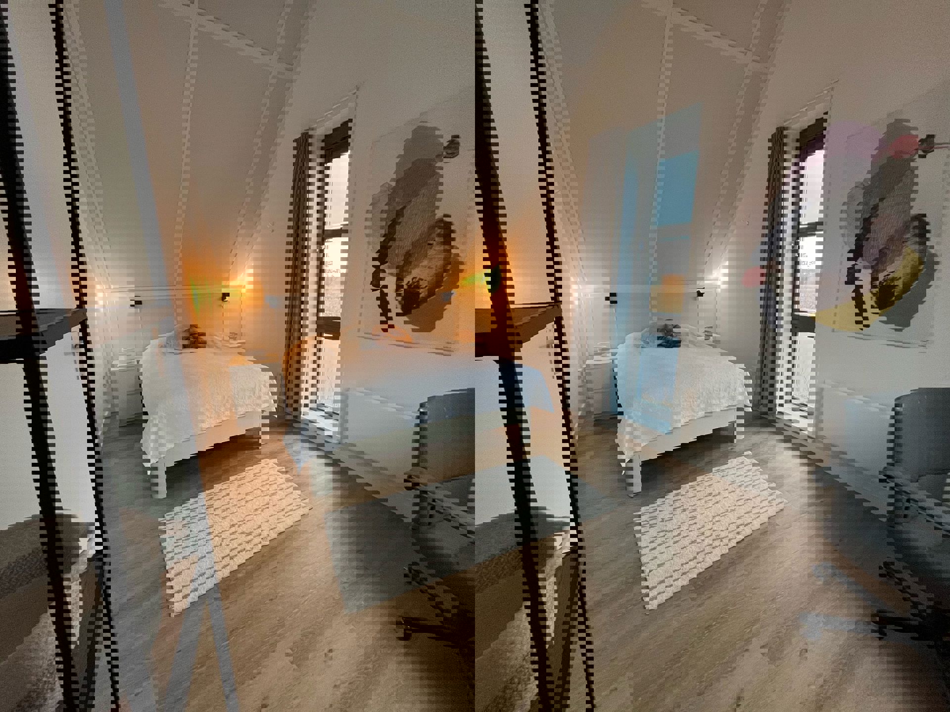 De sfeer in de slaapkamer is gezellig en uitnodigend, met zorgvuldig gekozen decoraties en verlichting. Het tweepersoonsbed nodigt uit tot ontspannen nachten en biedt een knusse plek om te rusten. Er is een eigen werkplek zodat je in alle rust en concentratie kunt werken of ontspannen.