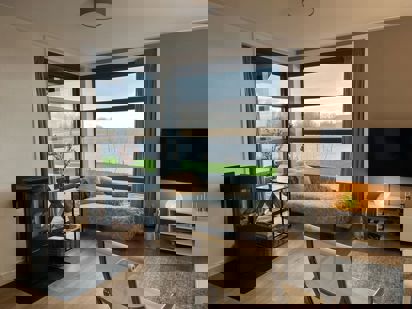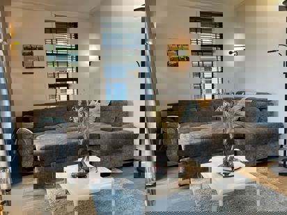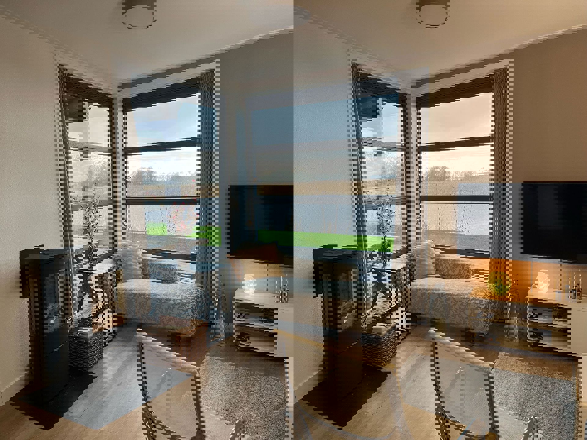 De ruime en smaakvol ingerichte woonkamer straalt een ontspannen sfeer uit. Perfect voor een gezellig samenzijn na een dag vol avonturen. Grote ramen baden de kamer in natuurlijk licht en bieden een schilderachtig uitzicht op de omgeving.