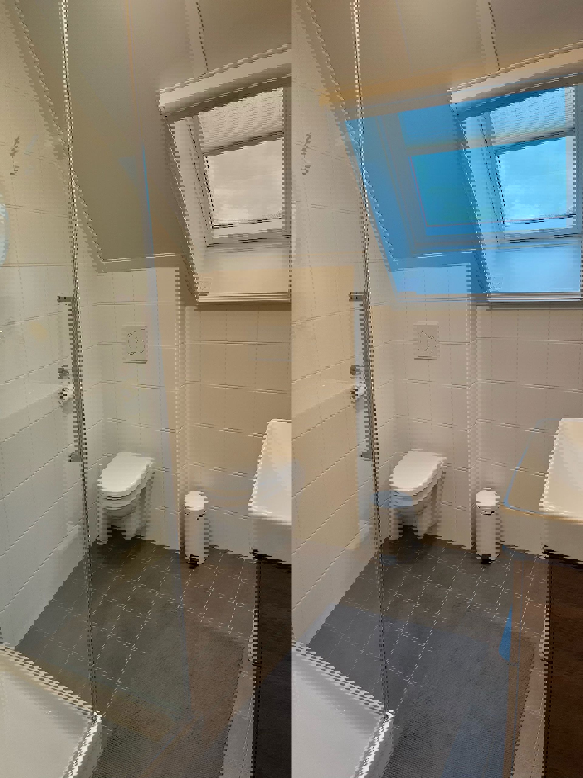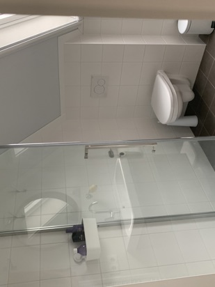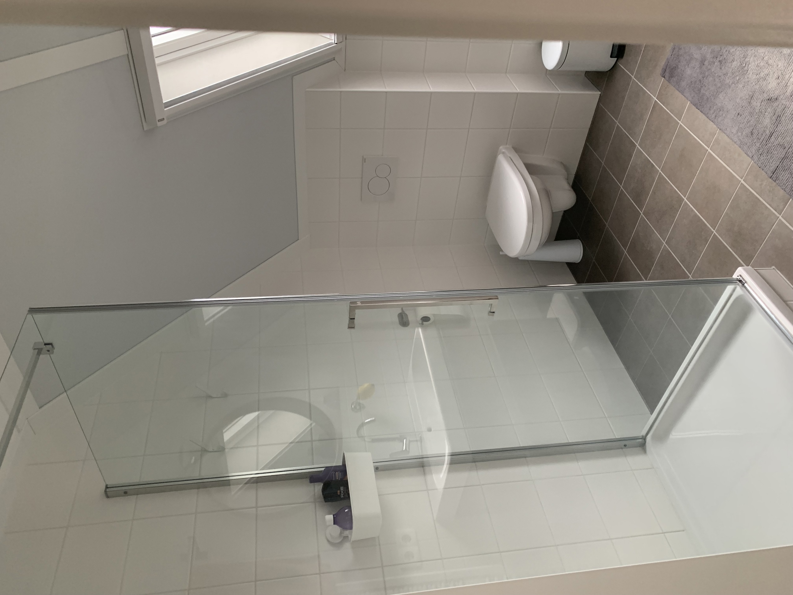 De moderne badkamer is voorzien van een heerlijke douche, toilet en een ruime wastafel, zodat je alles bij de hand hebt voor een aangename persoonlijke verzorging. Voor gezinnen met kleine avonturiers is er een handig kinderopstapje.