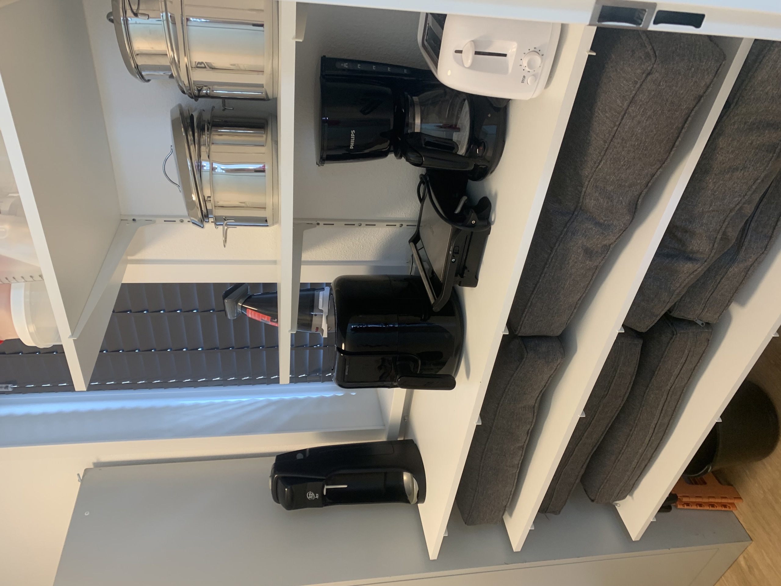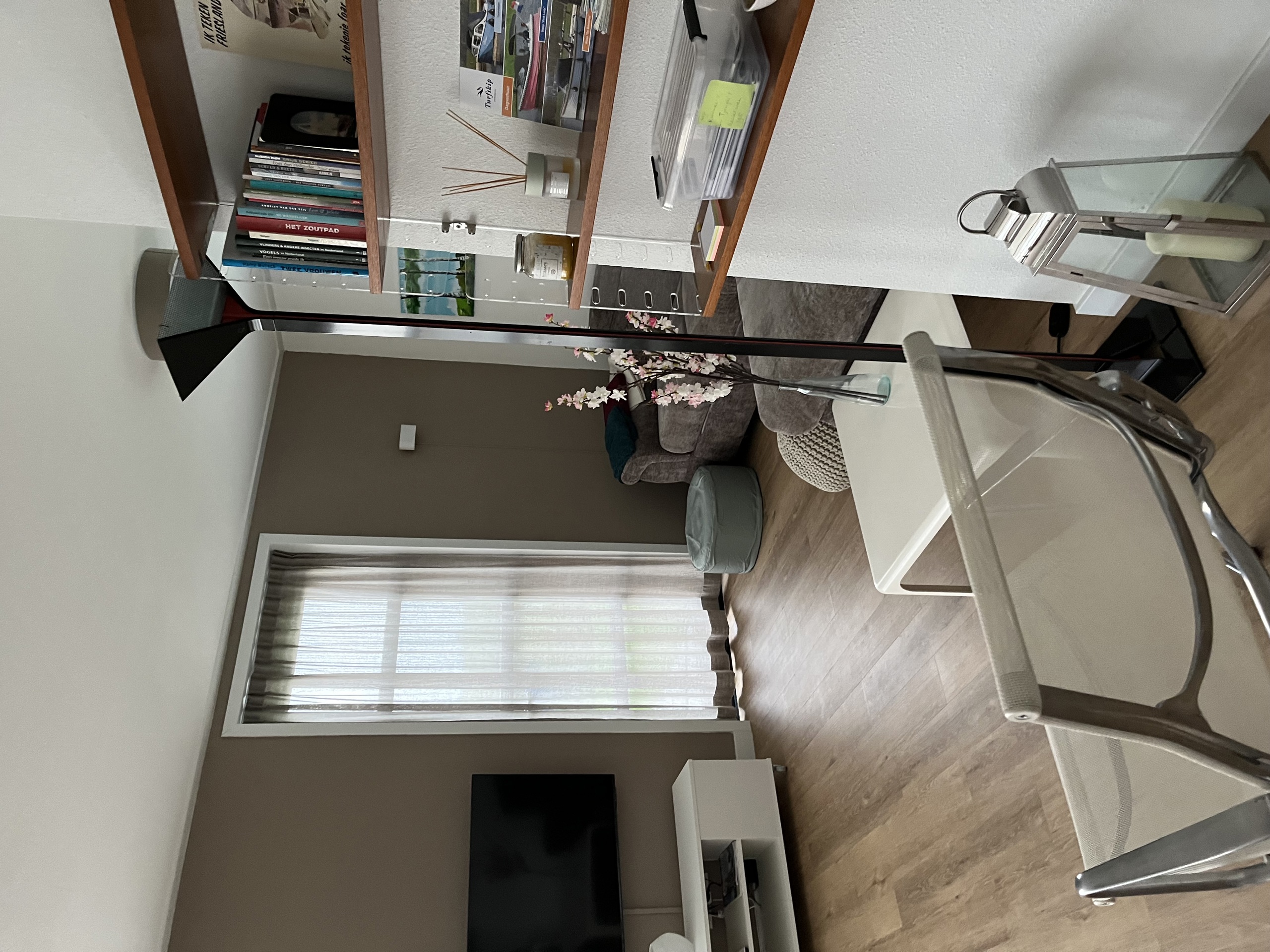 In de ruime hal is een kapstok en schoenenrek die voldoende ruimte biedt voor jassen en schoenen. De meterkast herbergt niet alleen de technische aspecten van de woning, maar bevat ook handige benodigdheden zoals een stofzuiger en een strijkplank.