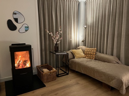 De aangename zitplaatsen nodigen uit tot ontspanning, of het nu is voor het lezen van een goed boek, het kijken naar je favoriete film, spelletjes spelen met je reisgenoten of gewoon ontspannen met een glas wijn bij de houtkachel. De woonkamer is een heerlijke plek om de dag af te sluiten.
